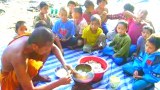 พระออกบิณฑบาตรทุกเช้าเอาข้าวมาเลี้ยงเด็กกำพร้า
