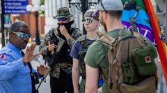 กลุ่มชายฉกรรจ์ประท้วงคำสั่งของรัฐนอร์ธ แคโรไลนาให้หยุดอยู่บ้านด้วยอารุุธสงคราม