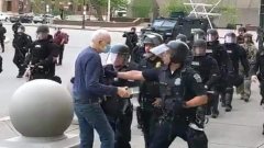 ตำรวจปราบจลาจลของมะกันสุดโหด ผลักคนแก่เต็มแรงจนเซถลาล้มหัวฟาดพื้น