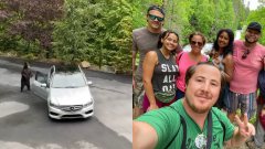 หมีดำพยายามเปิดประตูรถ เพื่อหาของกิน แต่ต้องตกใจและถอยห่างออกไป เมื่อได้ยินเสียงบางอย่าง