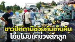 มันต้องอย่างนี้สิ รถผลไม้ประสบอุบัติเหตุ แต่โชคดีไม่มีคนขโมย มีแต่คนมาช่วยเหลือ
