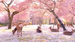 ภาพงดงามราวนิยาย "กวางน้อย" อยู่ท่ามกลางต้นซากุระสีชมพูบานสะพรั่ง