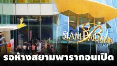 บรรยากาศ หน้าห้างสยามพารากอน ประชาชนต่อแถวเพื่อเข้าใช้บริการภายในห้าง จำนวนมาก