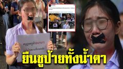 หญิงสาวในชุดนักเรียน ยืนชูป้ายทั้งน้ำตา หนูถูกครูทำอนาจๅร ในการชุมนุม นักเรียนเลว