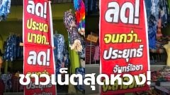 เปิดคลิปป้าย "ลดราคาประชดนายก ลดจนกว่าประยุทธ์ลาออก" ชาวเน็ตห่วงร้านเจ๊งก่อนลาออก