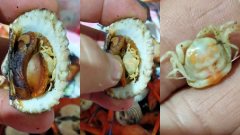 หนุ่มสงสัย ซื้อหอยแครง แกะออกมา เจอปูในหอยแทบทุกตัว