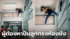 อีสาวสไปเดอร์แมน ปีนผนังห้องขังหลบหนีจากจับกุม