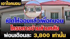 โครงการบ้านล้านหลัง ช่วยประชาชนผ่อนปล่อยกู้รายละไม่เกิน 1 ล้านบาท ผ่อนเดือนละ 3800 บาท