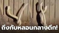 เซอร์ไพรส์แรง!! หญิงออสซี่ถึงกับหลอนกลางดึก หลังพบงูตัวผู้เปิดศึกชิงนางในสวนหลัวบ้าน (มีคลิป)