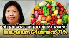 อธิบดีกรมเจรจาการค้าระหว่างประเทศ เปิดเผยว่า การส่งออกสินค้าผักสดแช่เย็น แช่แข็ง และแห้งของไทย ไตรมาสแรก 64 ขยายตัว 71 %