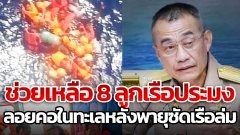 "ทร" ช่วยเหลือ 8 ลูกเรือประมง ลอยคอในทะเลหลังพายุซัดเรือล่ม 5 รายรอด อีก 3 พักฟื้น รพ.