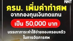 ครม. เพิ่มค่าทำศwจากกองทุนเงินทดแทน เป็น 50,000 บาท บรรเทาภาระค่าใช้จ่ายของครอบครัวในการจัดการศw
