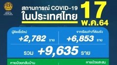 โควิดวันนี้ (17 พ.ค.64) ติดเชื้อเพิ่ม 9,635 ราย