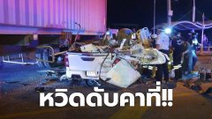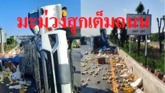 ปิคอัพบรรทุกมะม่วงเสียหลักพลิกตะแคง