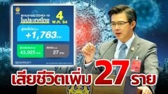 โควิดวันนี้ ยอดตายยังสูง!! ป่วยใหม่ 1,763 ราย เสียชีวิต 27 ราย