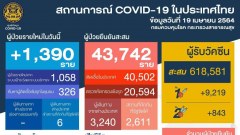 ไทย พบผู้ติดเชื้อรายใหม่ 1,390 ราย