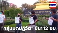 "กลุ่มมดปฏิวัติ" ยืน 1.12 ชั่วโมง ชู 3 นิ้ว ถือป้าย ร้องปล่อยเพื่อนเรา
