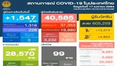17 เมษายน 2564 ไทยพบผู้ติดเชื้อใหม่ 1,547 ราย