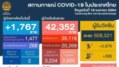ไทย พบผู้ติดเชื้อใหม่ 1,767 ราย