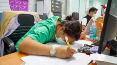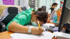 บุคลากรทางการแพทย์ หลับทั้งที่มือยังจับปากกา