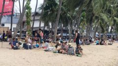 นักท่องเที่ยว แห่พักผ่อนเต็มชายหาดบางแสน วันหยุดยาวสงกรานต์
