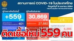 ไทย พบผู้ติดเชื้อโควิดเพิ่มอีก 559 ราย