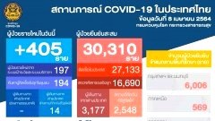 ไทย พบผู้ติดเชื้อใหม่ 405 ราย