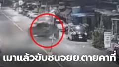 เมาแล้วขับ !! เสียหลักชนเสากันกลางถนน...ชนมอเตอร์ไซค์ที่สวนทางมาเสียชีวิตคาที