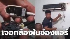 สาวกรี๊ดลั่นห้อง! เจอกล้องวงจรปิดในช่องแอร์