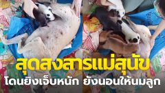 สุดสงสาร สุนัขแม่ลูกอ่อนโดนยิงเจ็บหนัก ยังนอนให้นมลูก (มีคลิป)