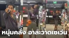 ชายคลั่ง อาละวาด ชี้หน้าด่าพนักงาน พังของ ทำร้าย รปภ. (คลิป)
