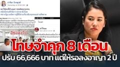 วันนี้ (7 เมษายน) ศาลพิพากษา ปารีณา ไกรคุปต์ โทษจำคุก 8 เดือน ปรับ 66,666 บาท แต่ให้รอลงอาญา 2 ปี
