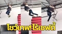 หนุ่มโชว์เทพ โหนตัวทำงาน เซฟตี้ไม่ต้องใช้ (คลิป)
