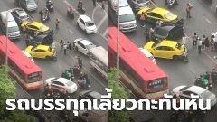 ด้วยความมักง่าย!! รถบรรทุกเลี้ยวกะทันหัน ทำรถชนกันหลายคัน