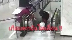 แม่ไม่ระวัง เด็กเกือบตกบันไดเลื่อน !! ( คลิป)