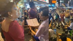 ครอบครัวกร่าง แอ่นอกสู้-ผลักลุงตำรวจ ล้มกระแทก (คลิป)