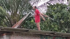 หนุ่มป่วยจิตคลั่งยา ทำร้ายแม่ชรา ควงมีดไล่ฟันชาวบ้าน ตร.บุกจับหนีขึ้นหลังคา ปีนต้นปาล์ม นาน 2 ชม