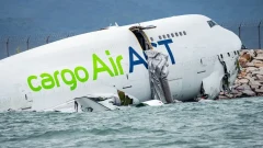 ดับ 2 หลังเกิดเหตุเครื่องบินส่งสินค้า ไถลออกนอกรันเวย์ฮ่องกงจนตกน้ำ