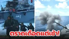 ตราดเดือดแต่เช้า "นาวิกโยธิน-รีคอน" ลุยภาคพื้นยึดคืนดินแดน เรือรบหลวงระดมยิงปืนใหญ่สนับสนุน