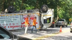 รถผู้ช่วยรัฐมนตรีกัมพูชา สังกัดพรรค CPP ของฮุนเซน เกิดพลิกควํ่า ตรงข้ามสถานทูตเวียดนาม