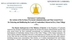 กระทรวงมหาดไทย ‘กัมพูชา’ ประณามไทยแผ้วถางที่ดินของประชาชนชาวกัมพูชาใน ‘หมู่บ้านเปรยจัน’
