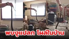 ชาวบ้านพบงูแปลก สีแดงดำโผล่ในบ้าน