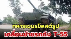 ทหารเขมรโพสต์รูปเคลื่อนย้ายรถถัง T-55 พร้อมแคปชั่นว่า “ของสุดโหด มาถึงแนวหน้าแล้ว”