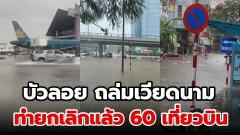 เหตุเกิดที่ กรุงฮานอย ประเทศเวียดนาม ขณะนี้มีฝนตกหนักจากพายุบัวลอย จนเที่ยวบินต้องยกเลิกไปกว่า 60 เที่ยวบินแล้ว