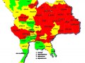 แผนที่ประเทศไทยแสดงผลการสำรวจระดับสติปัญญาเด็กนักเรียนไทย 2554