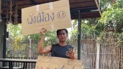"อนุวัต" ผู้ประกาศข่าวคนดัง สุดทน ยืนถอดเสื้อประท้วงกลางสี่แยกตลาดลำไทร เรียกร้องคณะกรรมการผังเมือง