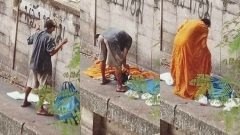 ฉายซ้ำร้อยปี ภาพนี้จำไม่ลืม ชายยืนข้างกำแพง เปลี่ยนชุดเป็นพระ