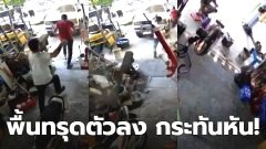 ระทึก!! พื้นตึกแถว จู่ๆ ทรุดตัวลง พนักงานวิ่งกันวุ่น โชคดีที่หนีทัน