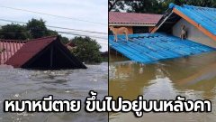 หนักสุด! จังหวัดอุบลฯ น้ำท่วมสูงมิดหลังคาที่บ้าน ขนาดน้องหมายังต้องหนีตๅยไปอยู่บนหลังคา