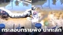 คลิปวินาที! แนวกั้นเขื่อน "น้ำท่าจีนล้น" ดังกระสอบทรายชาวบ้านพัง "ไหลทะลัก"เข้าท่วมหมู่บ้าน